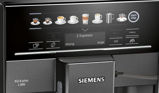 - coffeeSelect Display: Wszystkie kawy i napoje mleczne są wybierane i przygotowywane po dotknięciu dotykowego panelu sterowania