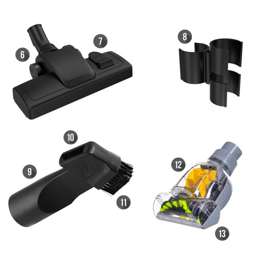 - Szeroki pakiet – aż 15 elementów, a w zestawie min. turboszczotka, dodatkowa ssawka szczelinowa