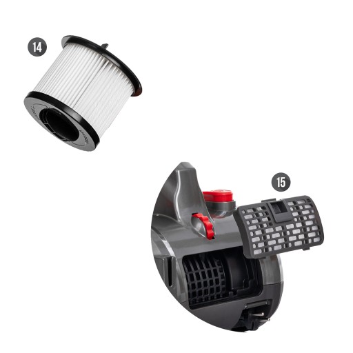 Odkurzacz wykorzystuje system filtracji powietrza, który separuje cząsteczki kurzu od zassanego powietrza w komorze odkurzacza.