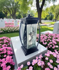 Znicz szklany ozdobny na grób z wkładem MAX-POL 29cm