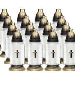 Znicz szklany na grób 12 szt duży biały lampion 19cm z wkładem palenia grób