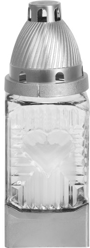 Znicze szklane w kolorze transparentnym. Zawierają wprasowane wkłady parafinowe o czasie palenia do 8 godzin. Znicze najwyższej jakości. Wkłady nie kopcą i wypalają się równomiernie do końca.